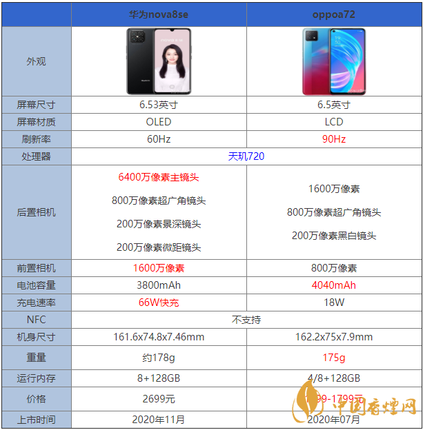 華為nova8se和oppoa72參數對比 哪款手機更值得入手