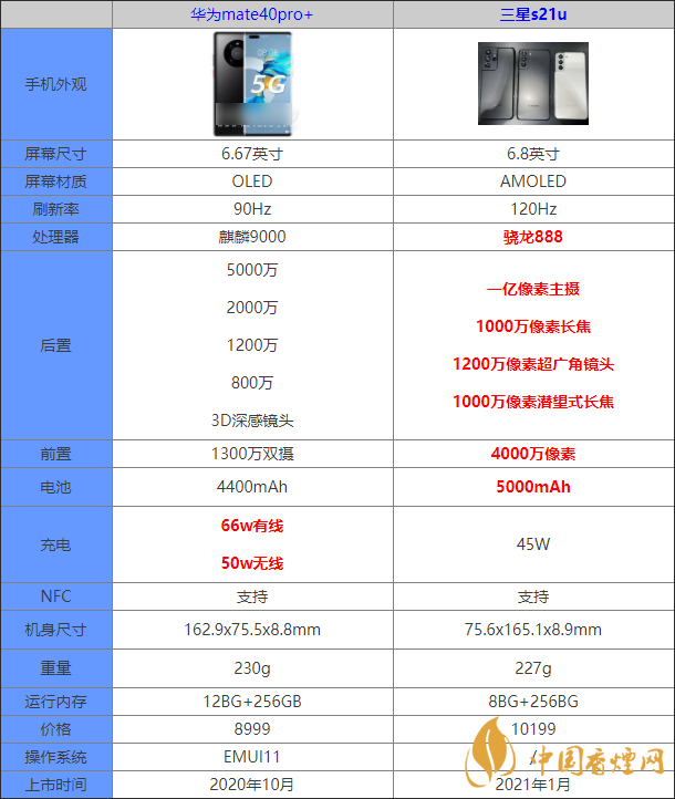 三星s21ultra和華為mate40pro+參數對比 哪款手機更值得入手