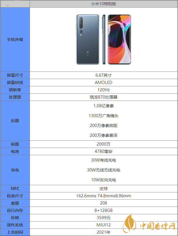 小米10特別版是小米在2021年最新發布的驍龍870系列的手機機型,那么小米10特別版這款手機具體的參數是什么?小米10特別版值不值得入手?下面香煙網小編為大家帶來最新的手機資訊,感興趣的朋友快來看看吧!