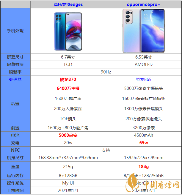 摩托羅拉edges和opporeno5pro+參數對比 哪款手機更值得入手