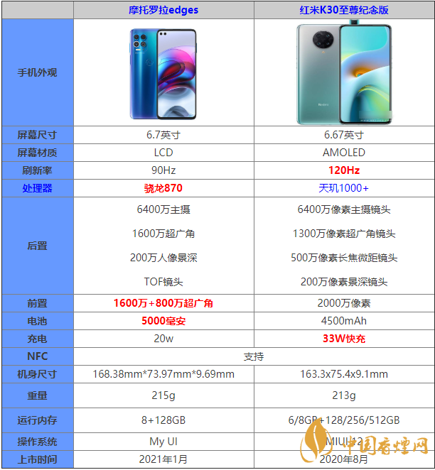 摩托羅拉edges和紅米K30至尊紀念版參數對比 哪款手機更值得入手
