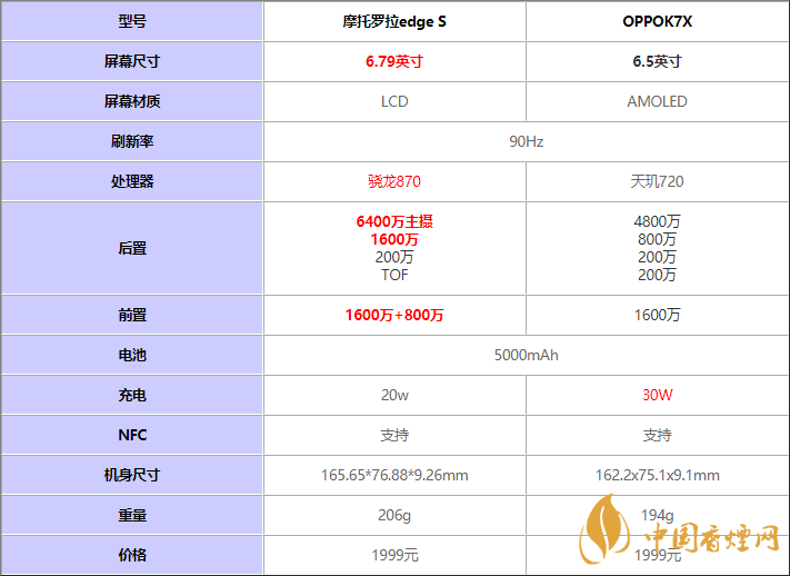 摩托羅拉edges和OPPOK7x買哪款-手機性能參數對比