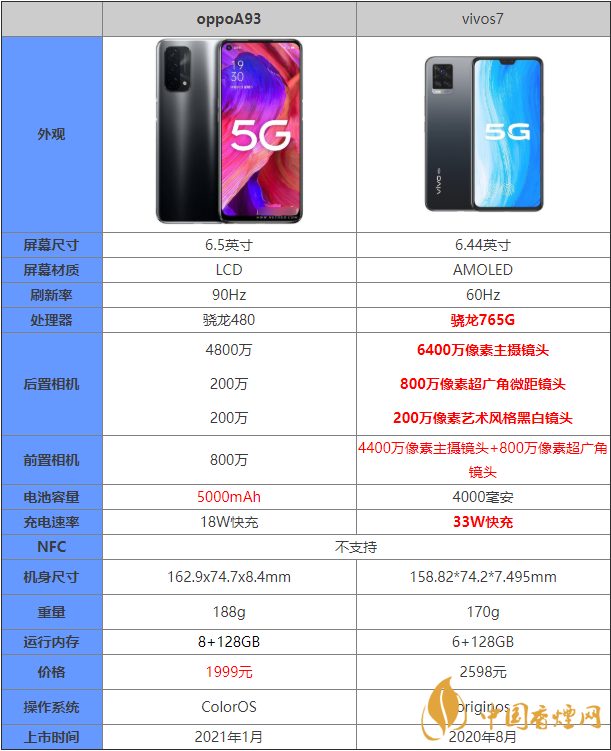 oppoa93和vivos7參數對比-哪款手機更值得入手
