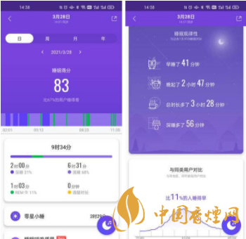 小米手環6,除了可實時檢查睡眠情況外,還支持呼吸睡眠質量監測,可根據睡眠期間心率變化以及血氧變化,判斷睡眠時呼吸質量,提供健康報告。