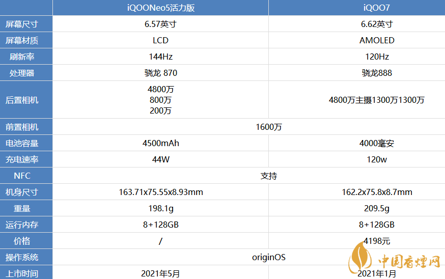 以上就是香煙網(wǎng)小編為大家?guī)淼腝OONeo5活力版和iQOO7參數(shù)配置對比相關(guān)資訊,以上資訊全來自網(wǎng)絡(luò),更多最新最實(shí)用的資訊請持續(xù)關(guān)注香煙網(wǎng)。