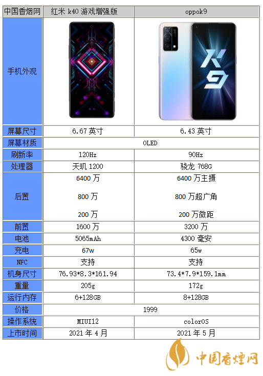 以上就是小編收集到的oppok9和紅米k40游戲增強版買哪個-參數性能對比的相關內容,以上內容均來源于網絡,僅供參考,一切以實際為準,更多最新數碼資訊請關注香煙網。