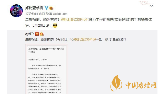 中興通訊終端業(yè)務(wù)部總裁兼努比亞技術(shù)有限公司總裁倪飛發(fā)布了“致牛仔的信”,正式宣布努比亞Z30 Pro將于5月20日發(fā)布,下面跟著小編來(lái)一起了解一下吧。