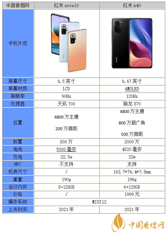 以上就是小編收集到的紅米note10和紅米K40參數對比-紅米note10和紅米K40性能分析的相關內容,以上內容均來源于網絡,僅供參考,一切以實際為準,更多最新數碼資訊請關注香煙網。