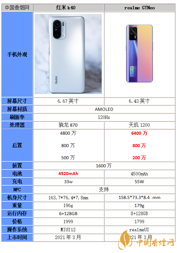 以上就是小編收集到的真我GTneo和紅米K40差別在哪-真我GTneo和紅米K40參數性能對比的相關內容,以上內容均來源于網絡,僅供參考,一切以實際為準,更多最新數碼資訊請關注香煙網。