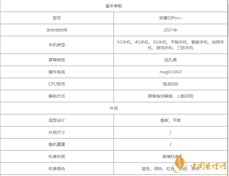以上是小編整理的有關榮耀50pro參數配置怎么樣-榮耀50pro參數詳細參數一覽的最新信息,相信在座的朋友們聽到小編的介紹有所認識,但是小編在這里提醒一句以上信息整合于網絡,更多最新最實用的資訊請持續關注香煙網。