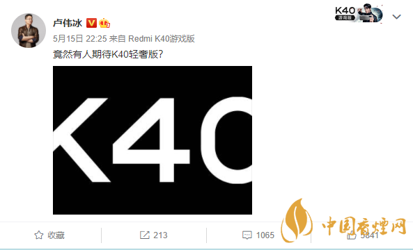 近期,盧偉冰發布微博表示居然有人期待紅米K40輕奢版?