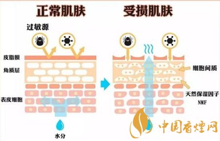煙草里的“丙酮”,是導致皮膚敏感的罪魁禍首之一。皮膚上的油脂膜既可以阻擋外來過敏原刺激到肌膚;又能防止皮膚內的水分被空氣蒸發。這樣才能構建出健康的“肌膚屏障”。