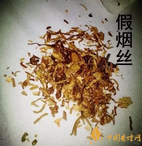 而假煙的煙絲一般使用正宗卷煙的下腳料,或使用未經處理的劣質煙絲。色澤發暗無光澤,呈青褐色。含煙梗多,含碎末多。有些煙絲經染色處理,呈現不規則的紅色,或在煙絲邊角處發紅,或黃中帶白。