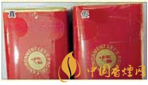 真煙的拉帶線為不干膠專用拉帶線,在紫外熒光燈的照射下會顯示紅色字母圖案,在正常光線下變換不同角度觀察時會變換出紫紅色;假煙的拉帶線均為普通拉帶線,生產工藝粗糙,不具備真煙拉帶線所呈現出來的特征及效果。