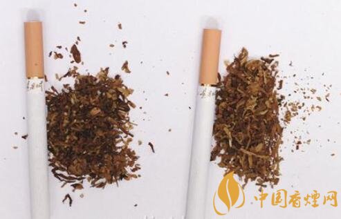 真品煙支采用單一醋纖濾嘴,長度為25mm,煙絲切絲寬度均勻,煙絲疏松、光澤油潤性好、含碎末少。煙絲結構為葉絲、膨脹葉絲、膨脹梗絲和再造煙葉;假煙煙支過濾嘴較短,長度約為21mm,制絲工藝粗糙,光澤油潤性差、煙絲中含碎末較多,大量梗絲未經過膨脹處理,一般無膨脹葉絲和再造煙葉,與真品特征存在明顯差異。