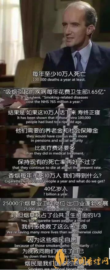 香煙行業(yè)的發(fā)展,除了繳稅方面貢獻(xiàn)極大之外,在緩解我國(guó)的社保壓力方面,也有很大的貢獻(xiàn)。給大家一個(gè)笑話(huà),大家自己體會(huì)下,在英劇《是,首相》中,有這么一段對(duì)話(huà),犀利而幽默: