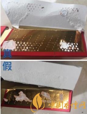 真品卷煙側邊有一條與側邊平行的機器壓痕;假煙采用手工燙封,沒有機器留下的壓痕。