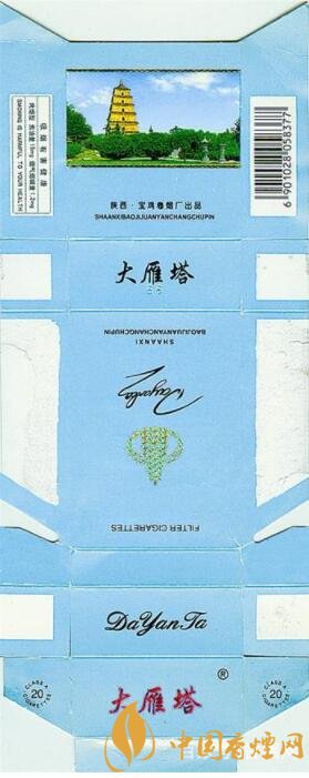7、上世紀90年代陜西寶雞卷煙廠出品的“大雁塔”煙標。