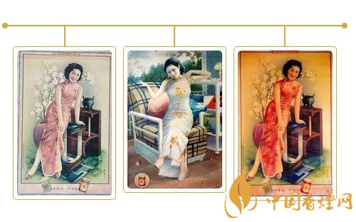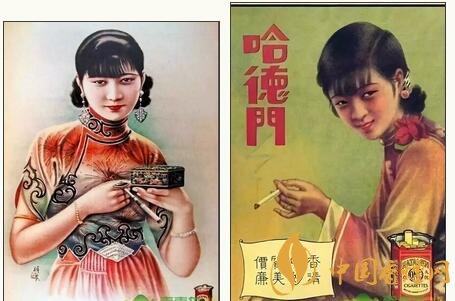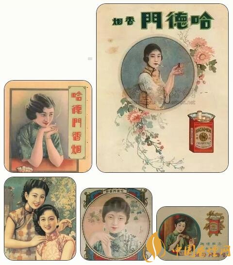 民國時期的香煙廣告,“美女”成為廣告畫中的絕對主角,使得廣告散發出誘人的女性魅力,以迎合和吸引大眾的注意力。而在當時紅極一時的哈德門香煙,全國各大中城市的巨幅廣告牌比比皆是,觸目可及。為了促銷增收,除大張旗鼓地推出各類廣告外,還在每盒煙中配有畫片一枚,供欣賞收藏。畫面皆為摩登美女,印刷精美,色彩靚麗。畫片背面亦印有廣告詞“哈德門香煙人人愛吸”。據查,美女共有百名,這些活潑自信,燙發,穿高跟鞋,旗袍高開叉的“香煙美女”,服飾發型和神態各有千秋,情態紛呈,不管是讀書、梳妝,還是玩樂,無一不讓人感受到美感帶來的視覺沖擊。一枚擁有,即思百枚。