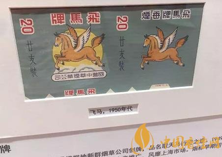 ——“飛馬”(上世紀50年代出品),1943年淮南抗日根據地新群煙草公司生產,煙標早期圖案為帶翅膀的飛馬。 1949年,國營中華煙草公司以“解放區名煙”對其進行推廣,風靡上海市場。煙標后來改為騰空躍起的棗紅駿馬。