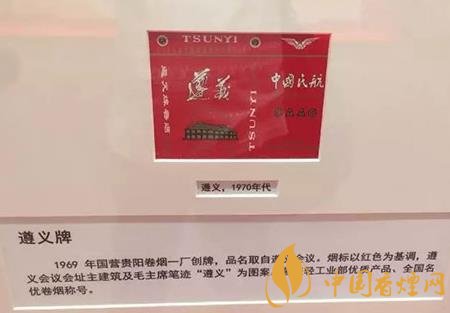 遵義牌,1969年國營遵義卷煙一廠創牌。煙標以紅色為基調,遵義會議會址主建筑及毛主席筆跡“遵義”為圖案。