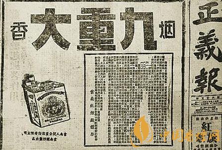 庾恩錫在昆明慶云街創建的云南首家機制卷煙廠——亞細亞煙草公司。1950年2月14日云南《正義報》上刊登的“大重九”上市廣告,從此,“大重九”的商標設計保持了相對穩定,經典元素始終不變。