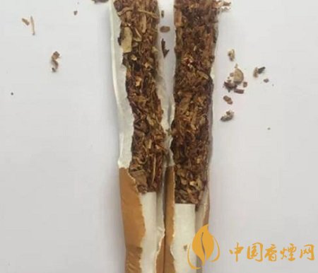 真品卷煙煙絲呈金黃色、絲條狀,香氣綿柔;假煙煙絲呈棕黑色,含末量大,香精氣味濃烈。