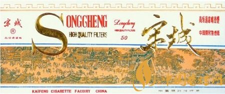 上世紀80年代,開封卷煙廠出品的“宋城”煙標,則采用廣闊的全景畫表現形式,選取了該畫作的后半部分:只見高大的城樓兩側的屋宇鱗次櫛比,街市行人摩肩接踵;士農工商、男女老幼、三教九流,無所不備。