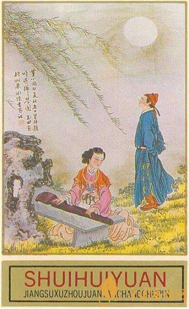 江蘇徐州卷煙廠出品于上世紀90年代的白底“水繪園”煙標,主版為水繪園遠景圖;副標展現的是:皓月當空之夜,明末清初文學家冒襄(字辟疆)佇立于幽雅寧靜、垂柳依依的水繪園中,聚精會神地傾聽秦淮名妓董小宛彈奏古箏的場景;側標印有相關文字介紹:“水繪園,中華園林之‘孤本’。明末四公子之一的冒辟疆,偕金陵名妓董小宛棲隱如皋水繪園。斯時,文人志士薈集其間,氣節風流,名動天下。”此外,我國火柴生產企業也出品過寄予“有情人終成眷屬”祈盼的火花。