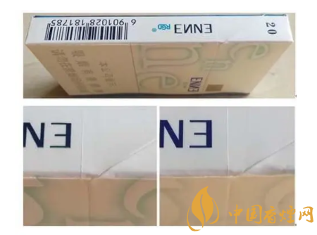 (4)真品卷煙“enne”小寫字母筆畫立體感強(qiáng)。假冒卷煙小寫字母筆畫無立體感。