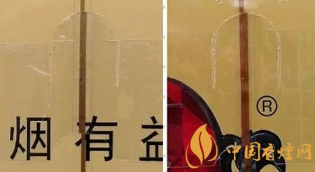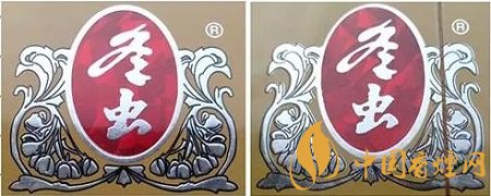 真品卷煙商標印刷采用“凹印”,兩種顏色交界邊緣呈現虛邊或鋸齒狀。假冒卷煙商標印刷一般采用“膠印”,兩種顏色交界邊緣比較清晰、光滑,無鋸齒狀。(左真右假)
