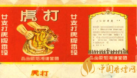 打虎牌煙標,是一枚上世紀50年代初期國營建湘煙廠(今湖南中煙工業公司長沙卷煙廠)出品的《打虎牌》煙標(如圖),該標以大紅為底色,彩色套印,主版圖案運用漫畫藝術形式,通過簡潔夸張的繪畫技巧,粗獷的線條描繪出一手抓住虎頭,一手重拳出擊痛打虎頭的畫面;標中“打虎”和“國營建湘煙廠”的文字,從右向左橫排,有著鮮明的時代特色。副版上則印有一首鏗鏘有力的《打老虎》歌曲:“打打打,我們齊心合力打老虎,堅決徹底反貪污,反貪污,打老虎,集中火力來圍攻,一個老虎都不放過。老虎不減不收兵,一定要他快坦白。他要是不坦白,就打打打。”這首歌曾唱響在大江南北......