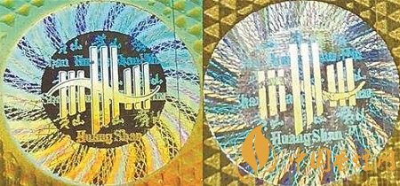 真品卷煙防偽標識采用激光全息防偽技術,不同角度呈現的圖文線條清晰、立體感強。假冒卷煙防偽標識系偽造,變換角度呈現的圖文線條模糊、立體感不強。(左真右假)