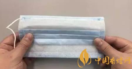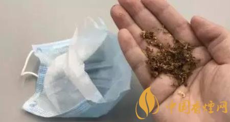第三,口罩其實是有三層的,打開其中一層放入香煙,另一層加入一些食用鹽,再用口罩中的鋼絲條把缺口的一端固定住。