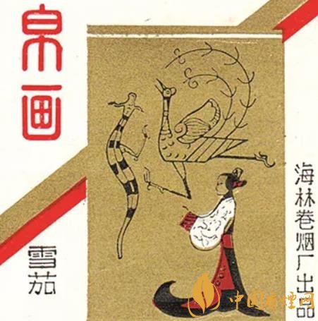 帛畫是中國古代畫種,因畫在帛上而得名。帛是一種白色的絲織品。帛畫在帛上用筆墨和顏料描繪人物、走獸、飛鳥及神靈、異獸等形象的圖畫,約興起于戰國時期,至西漢發展到高峰。上世紀七八十年代,黑龍江海林卷煙廠出品的“帛畫”煙標再現了1949年出土于湖南長沙陳家大山楚墓的“人物龍鳳帛畫”的迷人神韻。