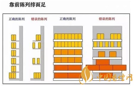 與擺放整齊的目的一樣,靠前陳列能較好地展示商品形成量感和美感,充分利用陳列工具來增強陳列效果。如下圖所示: