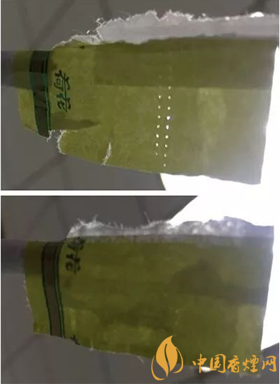 假煙接裝紙雖然也有2排打孔,但孔洞較小且未打透,孔點排列不規則。