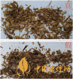 煙絲差異對比:真品卷煙煙絲呈金黃色,煙絲彈性好,具有特殊氣味。假冒偽劣產品煙絲多為褐黃色,煙絲含末量大,且添加大量化學香料,味道刺鼻,存在明顯差異。