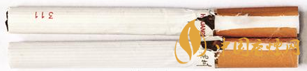 煙支過濾嘴及煙絲差異對比:真品煙支采用單一醋纖濾嘴,長度為25mm,煙絲切絲寬度均勻,煙絲疏松、光澤油潤性好、含碎末少。煙絲結構為葉絲、膨脹葉絲、膨脹梗絲和再造煙葉;假煙煙支過濾嘴較短,長度約為21mm,制絲工藝粗糙,光澤油潤性差、煙絲中含碎末較多,大量梗絲未經過膨脹處理,一般無膨脹葉絲和再造煙葉,與真品特征存在明顯差異。