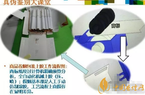 延安(1935)怎么分真假?拆開膠水痕跡形成: 真品卷煙均為機(jī)器上膠,制假分子目前都是手工涂膠水。