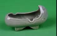 這款工藝煙灰缸是來自韓國的瓷質煙灰缸,顏色為細膩的青綠色,造型呈韓國古時的翹頭船有齒屐鞋形,鞋口沿輕微向內,靠近鞋跟及鞋頭處各有一個凹槽,用來擱置香煙。